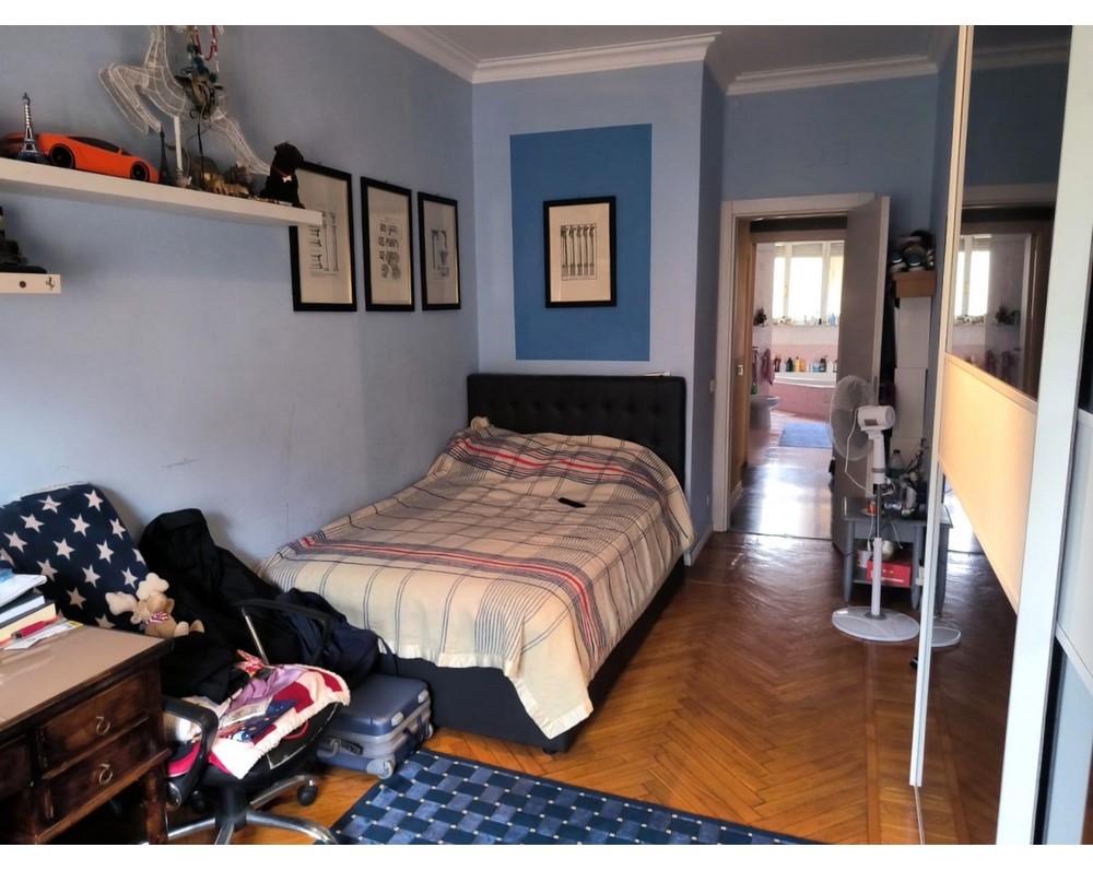 L’appartamento di mq 208 si trova al 4° piano di uno stabile d’epoca dotato di ascensore e servizio di portineria.